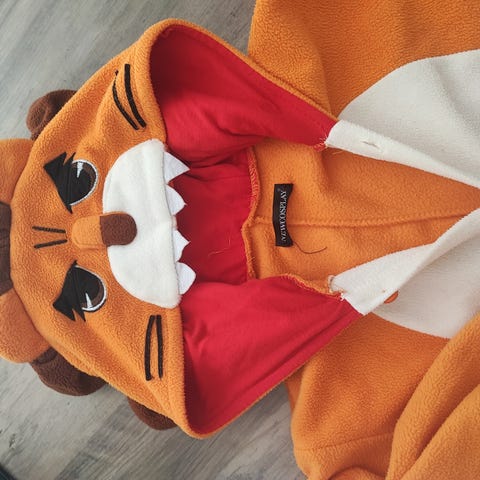 Selger en søt kosedress/kattedrakt. Dressen er pent brukt, og kommer fra et røyke- og dyrefritt hjem. På dressen står det str. 7-9 år, jeg tror den er litt liten i str og ville nok heller tenkt 7-8 år.
