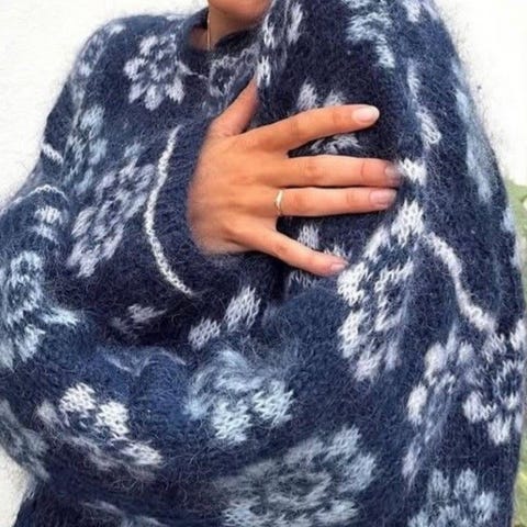 Mette Marit genseren fra Viking garn strikket i originalfargene i Viking Bjørk (50% bomull og 50% bambus).