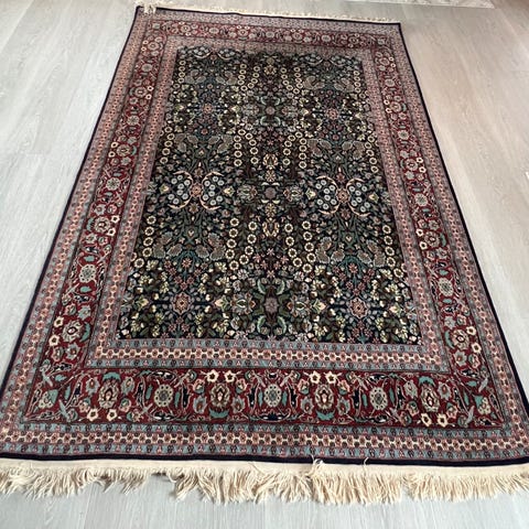 Nydelig håndknyttet Hereke silketeppe fra Tyrkia selges.