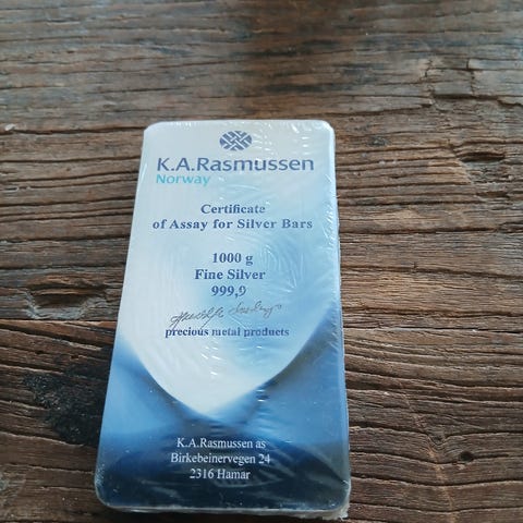 Sølvbarre fra KA Rasmussen selges. (Har flere forskjellige)