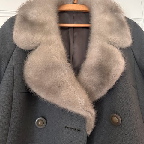 Foret ullkåpe med pelskrage og pelslue fra Møre Konfeksjonfabrikk Volda. Fra 1970-tallet. Veldig lite brukt - har hengt i skapet i alle år. Lengde 106 cm fra skulder og ned. 3 knapper. Hentes på Geilo. Kan leveres fraktfritt til Harestua eller Kongsberg ved anledning.