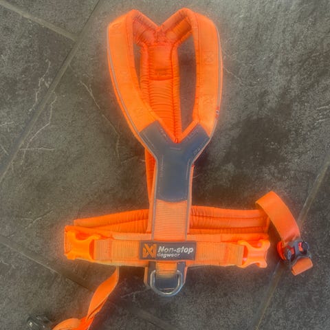 Hundejakke med fleeze inni str 60. Strikk til beina er røket, enkelt å skifte.