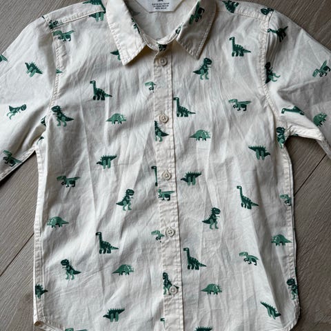 Skjorte med dinosaurer på, selges kr. 50,-.