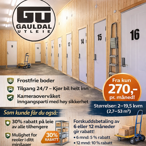 Lagerplass i nytt minilager på Kråkerøy i Fredrikstad, sentralt ved siden av Værste området.