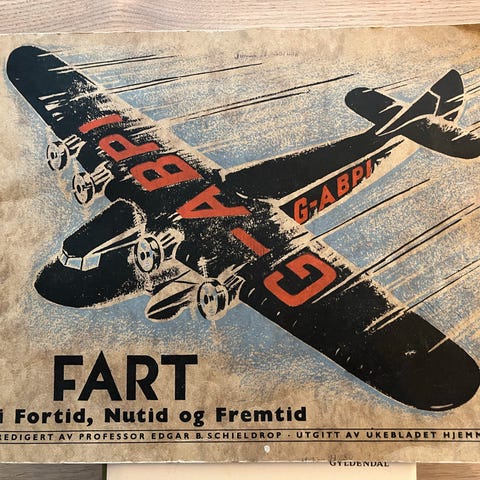 retrohefte, fart, luftfart, teknologihistorie, Edgar B. Schieldrop, Ukebladet Hjemmet, norsk populærvitenskap, vintage design, norsk historie, art deco, flyhistorie, transport, samlerhefte, 1930-tallet, 1940-tallet, norsk illustrasjon, fartøy, fly, fremtidsvisjoner, retro, antikvarisk trykksak, teknologisk utvikling, mellomkrigstid, norsk kulturarv