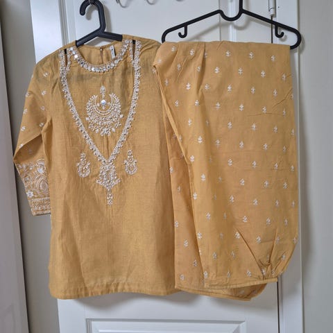 Discription : - Nude Colour Suit With Heavy Hand Embroidery With Dabka Nakshi and Pearl work. Perfect for Indian/pakistani occaitions. Dupatta and shalwar is also in fabric chiffon/pure.