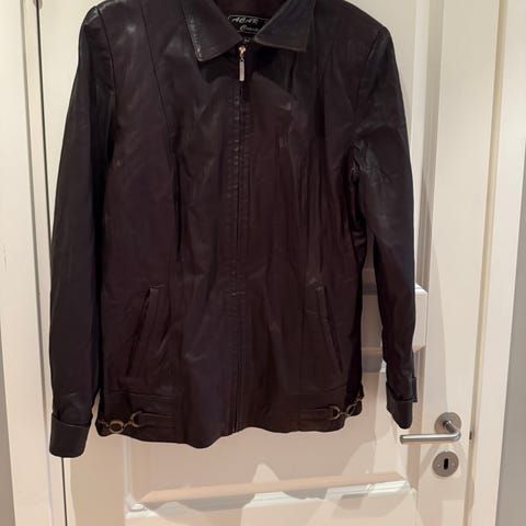 Str 38-40, mål arm fra skulder og ned 63 cm, rygg 43 cm, rygg og ned 58 cm