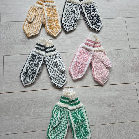 Håndstrikkede damevotter i 100%ull - str 7/8 - Selburose