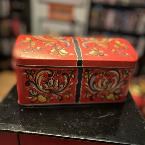 vintage krydderboks, schilling cloves, paper spice box, old packaging, nellik, retro kjøkken, antikk emballasje, collectible box, vintage decor, amerikansk vintage, old spice container, patina, samlerobjekt, kitchen display, retro papirboks