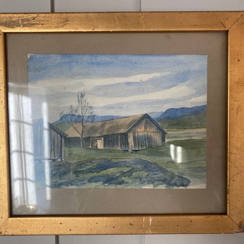 Noe utydelig signert 10.06.30 nede til høyre. Yttermål ramme: 30 x 38 cm.