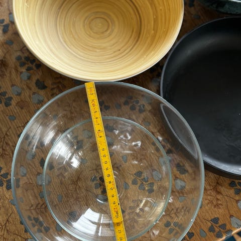 2 fine glass fat/skåler 4 cm h, 18 i diameter.