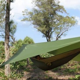 Ticket To The Moon Henge Tarp i størrelse 3x3 meter, laget for å gi beskyttelse mot vær og vind. Tarpen er laget av slitesterkt materiale og egner seg for bruk i friluftsliv, camping og som ly for hengekøyer.