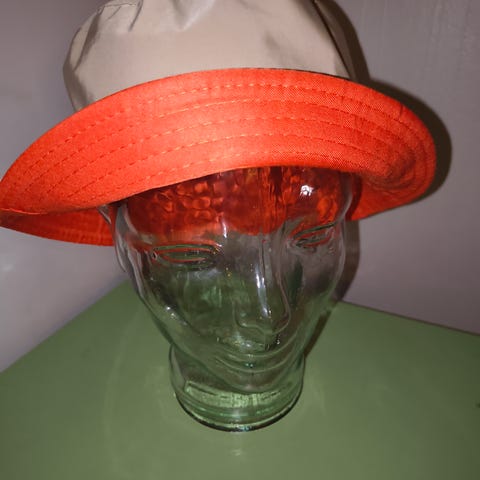 Beige bøttehatt i 100% lin og bomull. 100% lin utside og bomull innside. Kjøpt for ca 15 år siden men er ikke brukt. Merket med str Large.