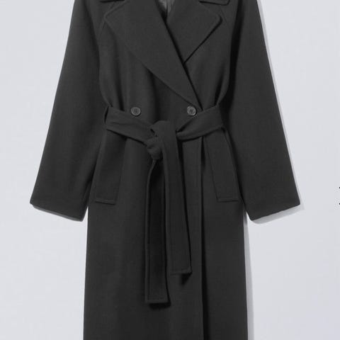 Trenchcoat fra HM i imitert krokodille skinn mønster. Str S. Kun brukt en gang og fremstår som ny