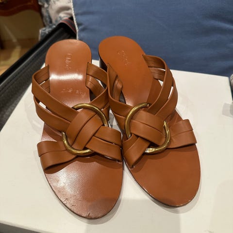 Pent brukt, ingen synlig slitasje annet en under på sålen. Helhøyde 13 cm. Str er 38,5 Ny pris ca 14K