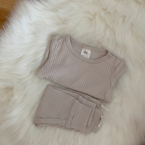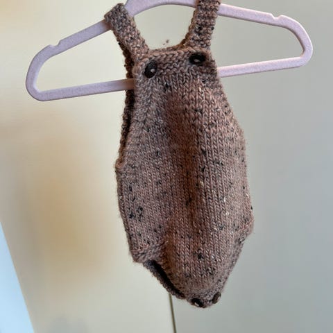 Hjemmestrikket kortbukse / romper til nyfødt med knapper av tre. Kan. Den er brukt 1 gang.