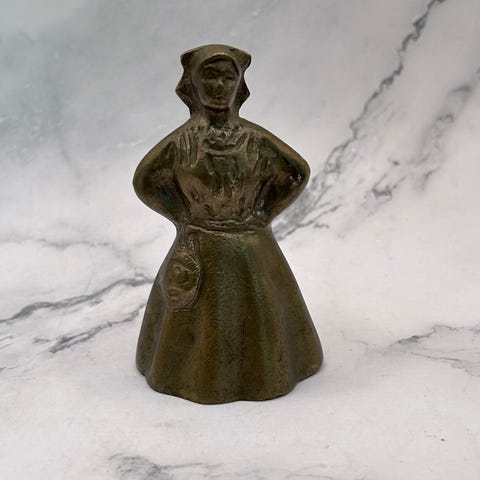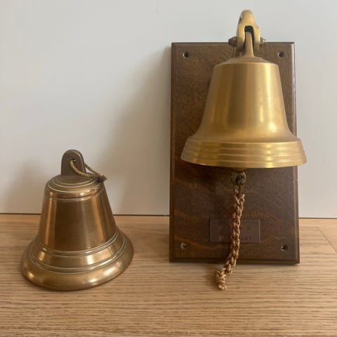 Dekorativ butler bjelle på stativ i messing. Lagd av Cawa, Danmark 1960/1970-tallet.