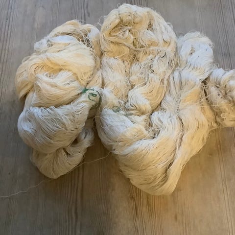 Perlegarn nr 5 kry 4 fedd. Det er 41kr dukka i butikken.