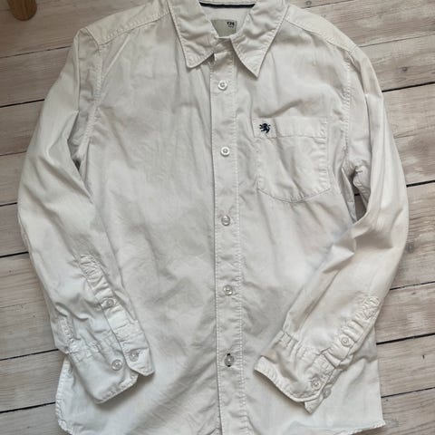 Fin og lite brukt hvit skjorte fra Woolrich str 8 år selges for kr 125.