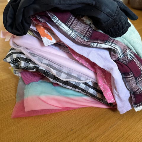 Alt er str 110/116 med unntak av kjole m/belte som er str 110 og prikkete kjole str 116/122