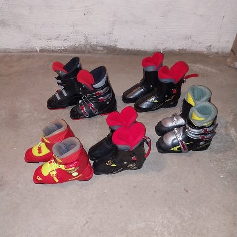 Slalåmstøvler. Litt klønete størrelsesbeskrivelse, men utvendige mål er 289mm og de virker å passe til noen som bruker ca str.37ish i vanlige sko.