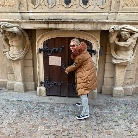 Den har glidelås helt opp i kragen og kåpen kan lukkes helt i halsen om man ønsker. Kåpen har en nydelig brent oransje/rustfarge (kommer ikke helt fram på bildet). Jeg er normalt en S, men denne kåpen i XS passer meg allikevel godt. Kåpen kostet 1500 kroner ny.