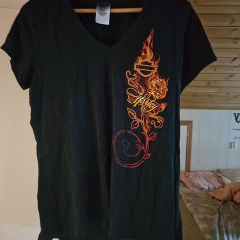Kul t-skjorte med julenisse/nissemor på motorsykkel/Harley Davidson.