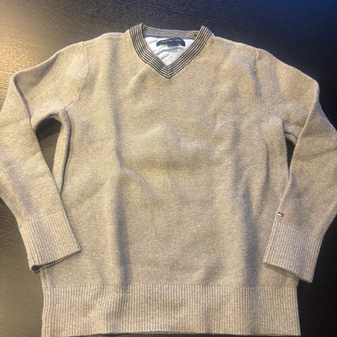 Fin, blå genser fra Tommy Hillfiger i god stand med stor logo i front. Str S