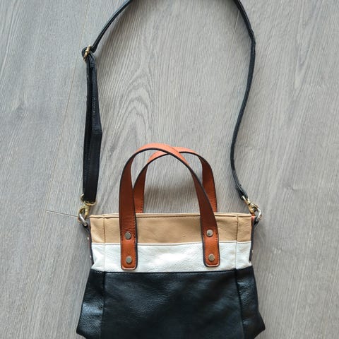 Kan bæres i hånden eller som skulderveske med den avtagbare stroppen.