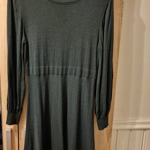 Kjole fra "Andrea". Kjolen er lite og pent brukt. Kjolelengde er 102cm fra topp i rygg til nedre kjolekant. Stofftype: Viscose og bomull. Knapper foran.