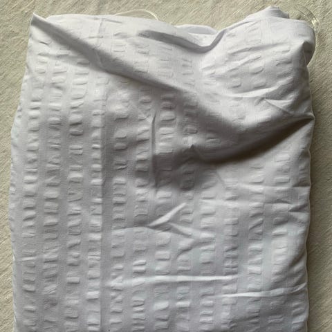 Kun brukt kort tid i forbindelse med oppussing. Ensfarget beige. Nyvasket. Opphengsringer følger med.