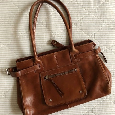 Veldig fin vintage skinnveske. Noe patina i skinnet. Regulerbar skulderstropp så den kan bæres både over og crossover. Velurstoff inni. Ett hovedrom og glidelåslomme, velurlomne og små skinnlommer til småting og penneholder. En glidelåslomme foran. 37 cm lang og 23 cm høy. Bredde 9 cm. Kan hentes i Oslo eller sendes. Kjøper betaler porto.