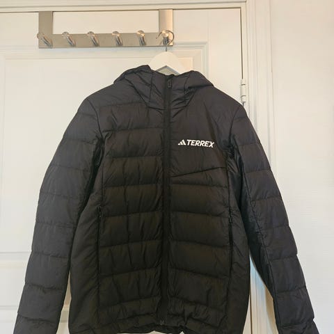 Varm og myk dunjakke fra Adidas terrex. Utrolig myk og deilig. Passer en S og en liten M. Fyllet er 90 % andedun. Fremstår som ny.
