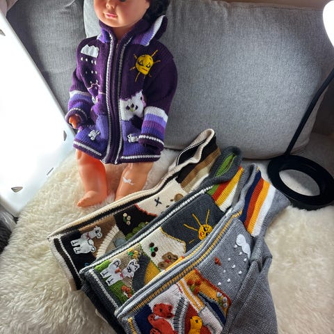 Selger to sett for 900 kr (tilsvarer 225 pr. del)