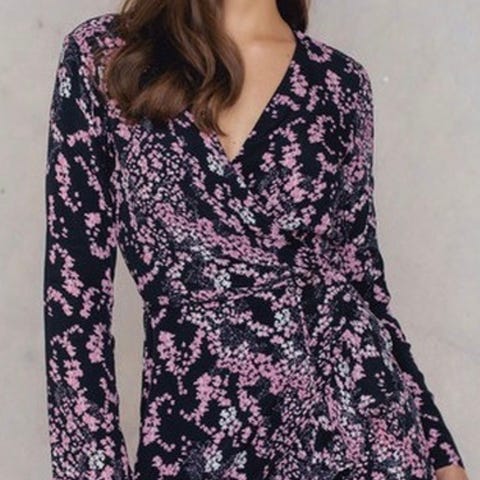 Kjole fra just female. Sort i bunn og blå blomster. Kul åpen rygg. Veldig fin på.