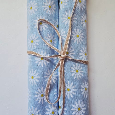 Har disse tøy-serviettene liggende, de er alle i lin: