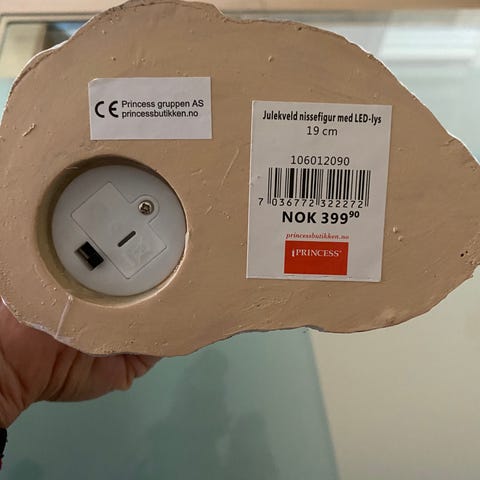 Nissekone med: lys og musikk.