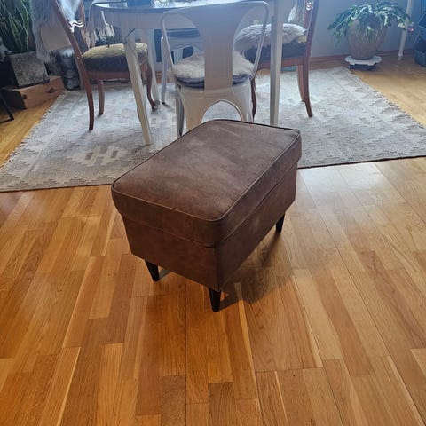 Nesten ny fotskammel fra IKEA selges på grunn av flytting. Den er grå, og med betydelig mindre tekstur enn modellene som selges hos IKEA nå. Dermed er den ganske nøytral og passer til mange sofaer!