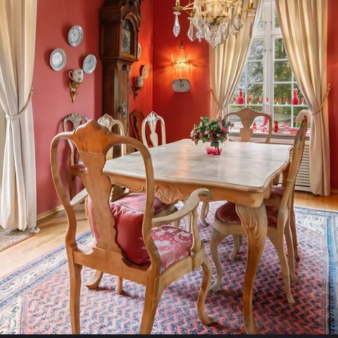 Auksjonshuset Blomqvist har vurdert spisestuen og antar at den er laget mellom 1890 og 1910.