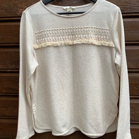 Mavi genser, hvit med blonder. Str M. Stoff: polyester og viscose