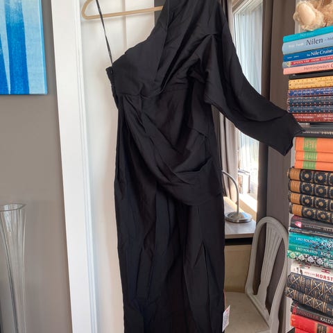 Penkjole med jakke, litt glans i stoffet, helfòret kjole.