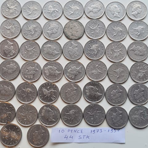 10 stk pene britiske 10 pence, stor type, selges samlet