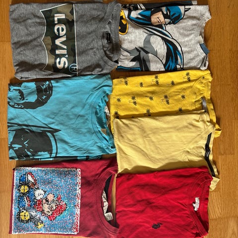 1 t-shirt fra POP (Str 134) og en langermet t-shirt (mørkeblått, 8 ÅR) fra Unit Kids. 50.- for begge.
