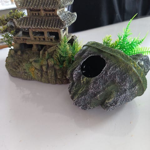Kunstig akvariepynt Stor 100,- resten 75,- pr stk. Samlet 300,-