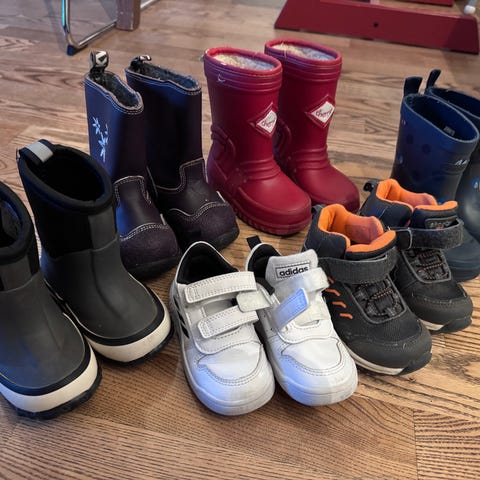 Strl: 28 - Gummistøvler, vintersko (nederst til høyre)