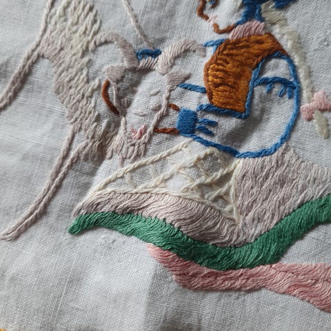 Har for salg håndsydd duk/løper. Stoff i 100% bomull. Hentes i Loddefjord - Bergen vest. Kan sendes men da betaler kjøper kostnaden.