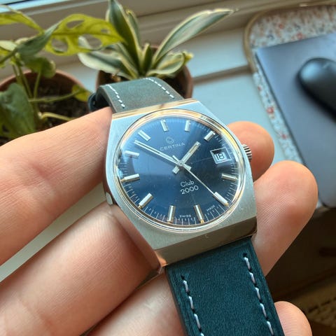 Gammel Certina dame klokke mekaniske/ manuelt opptrekk går tiden normalt dags dato reim må beregnes å byttes senere i tiden har ikke noe garanti hvor lenge klokke tikker selges som den er