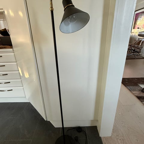 1 stk stålampe, kjøpt på Bohus for noen år siden. Den er pent brukt, men tipper litt fremover etter å ha vært med på en flytting. Har bare ikke prøvd å fikse. Byttes ut pga anskaffelse av bordlamper.