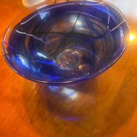 Kosta Boda Contrast White glasskål designet av Anna Ehrner. Skålen har en diameter på 160 mm og er laget av glass med en hvit base og blå kontrastfargede mønstre. Produktet er produsert i Sverige og kommer i original emballasje.