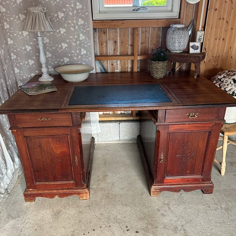 Et "Antique Victorian English Double Sided Twin Pedestal Kneehole Desk" for omtrent 19 726 US dollar.
